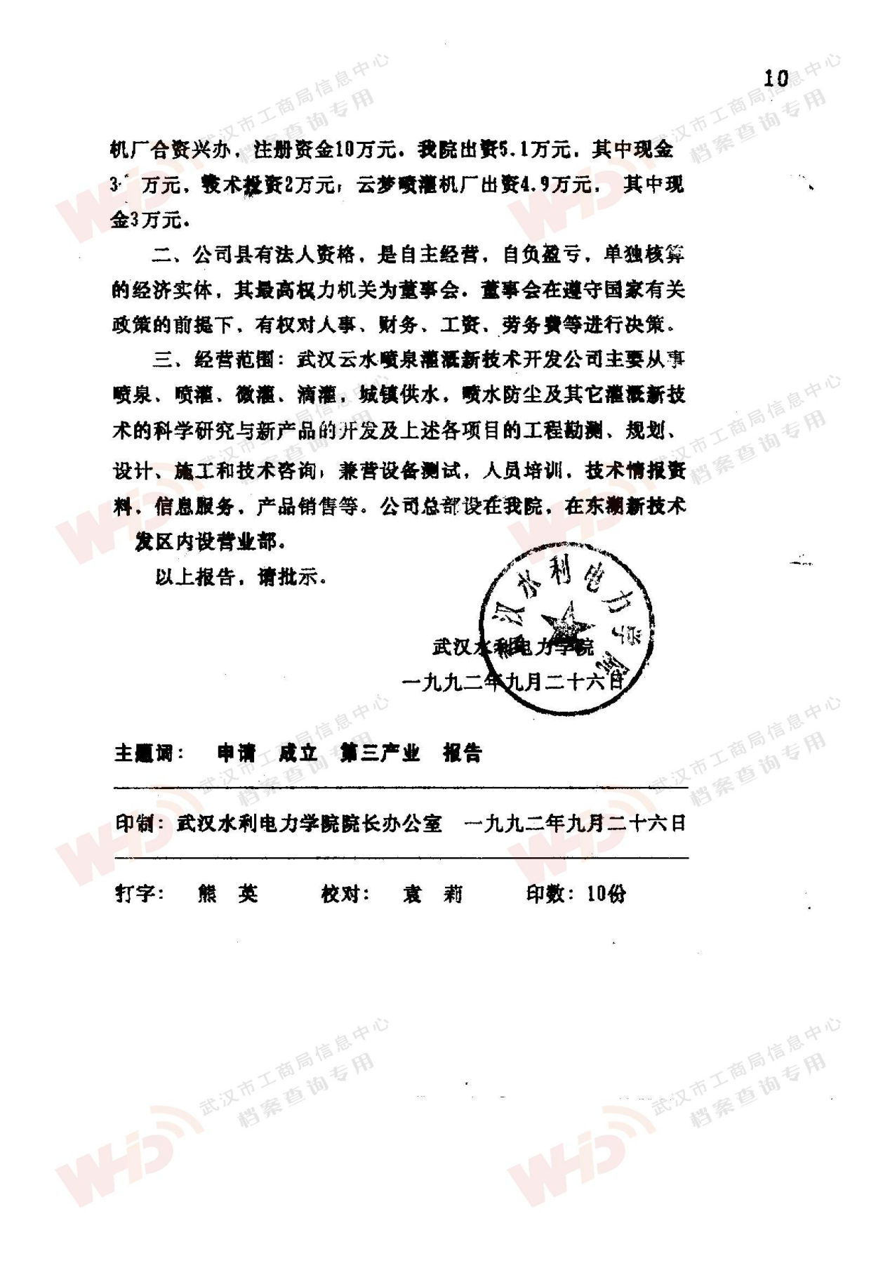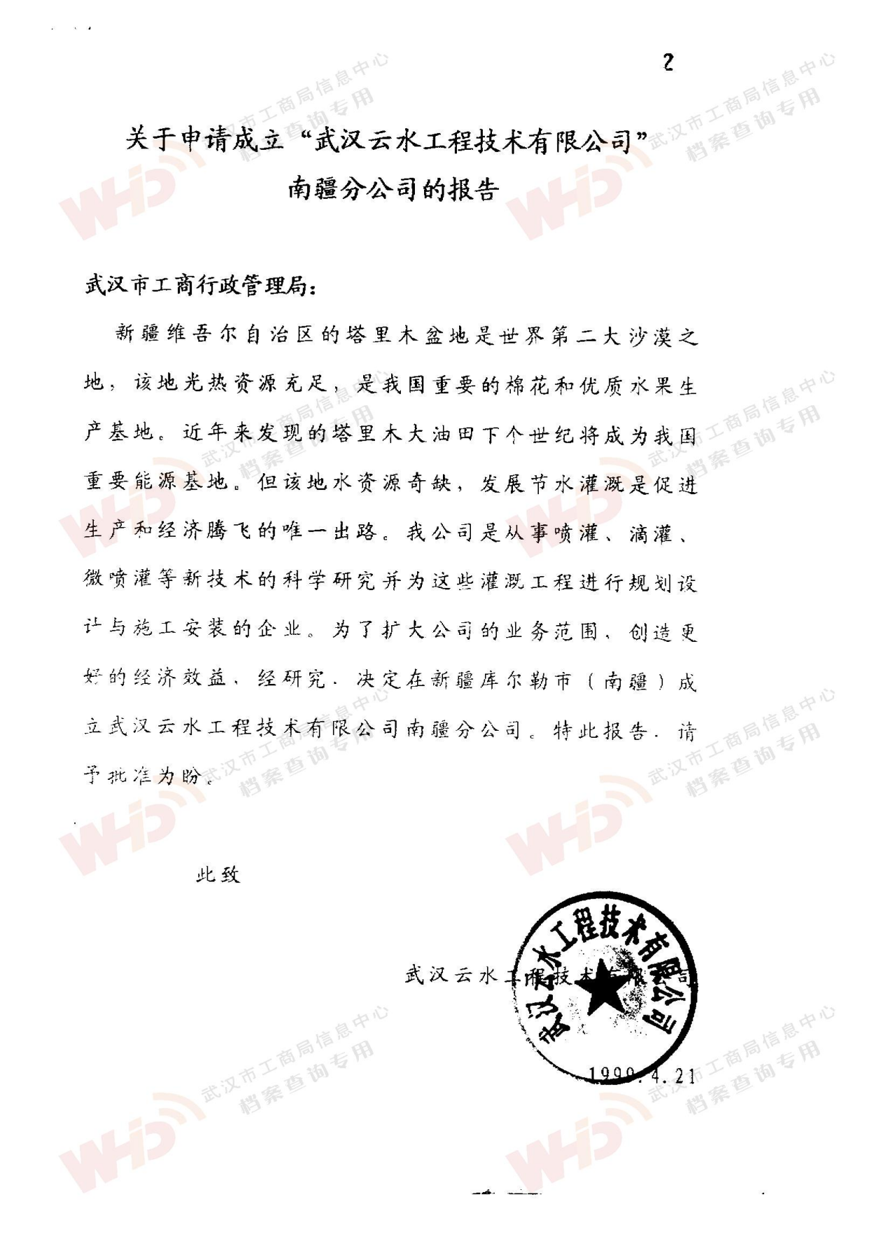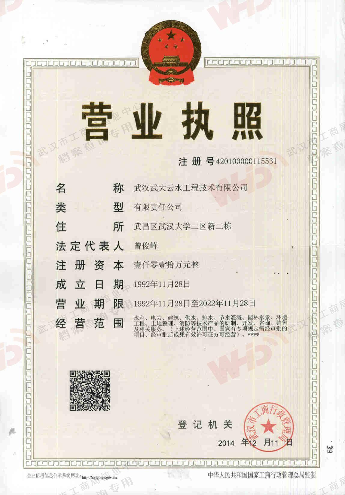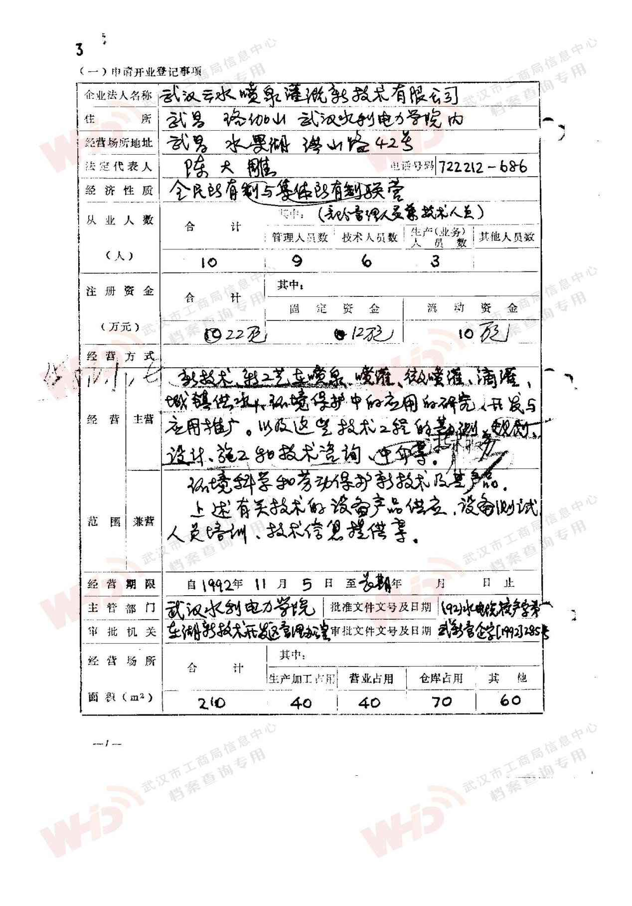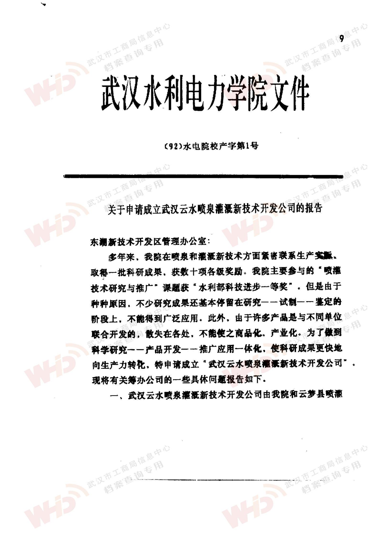 - 1992年9月26日申請成立:武漢云水噴泉灌溉新技術開發公司