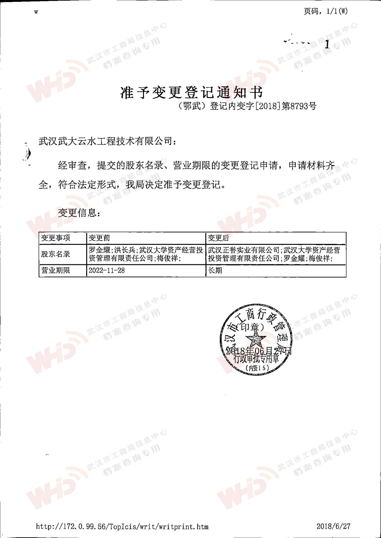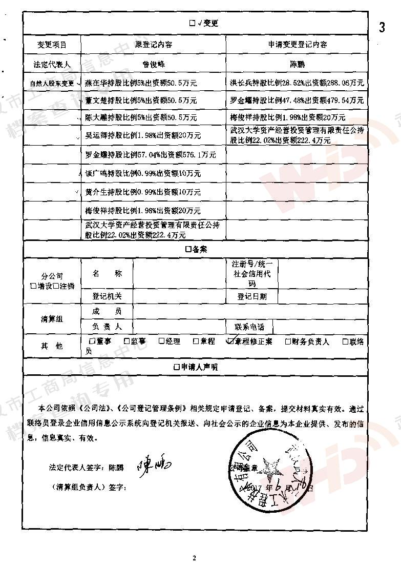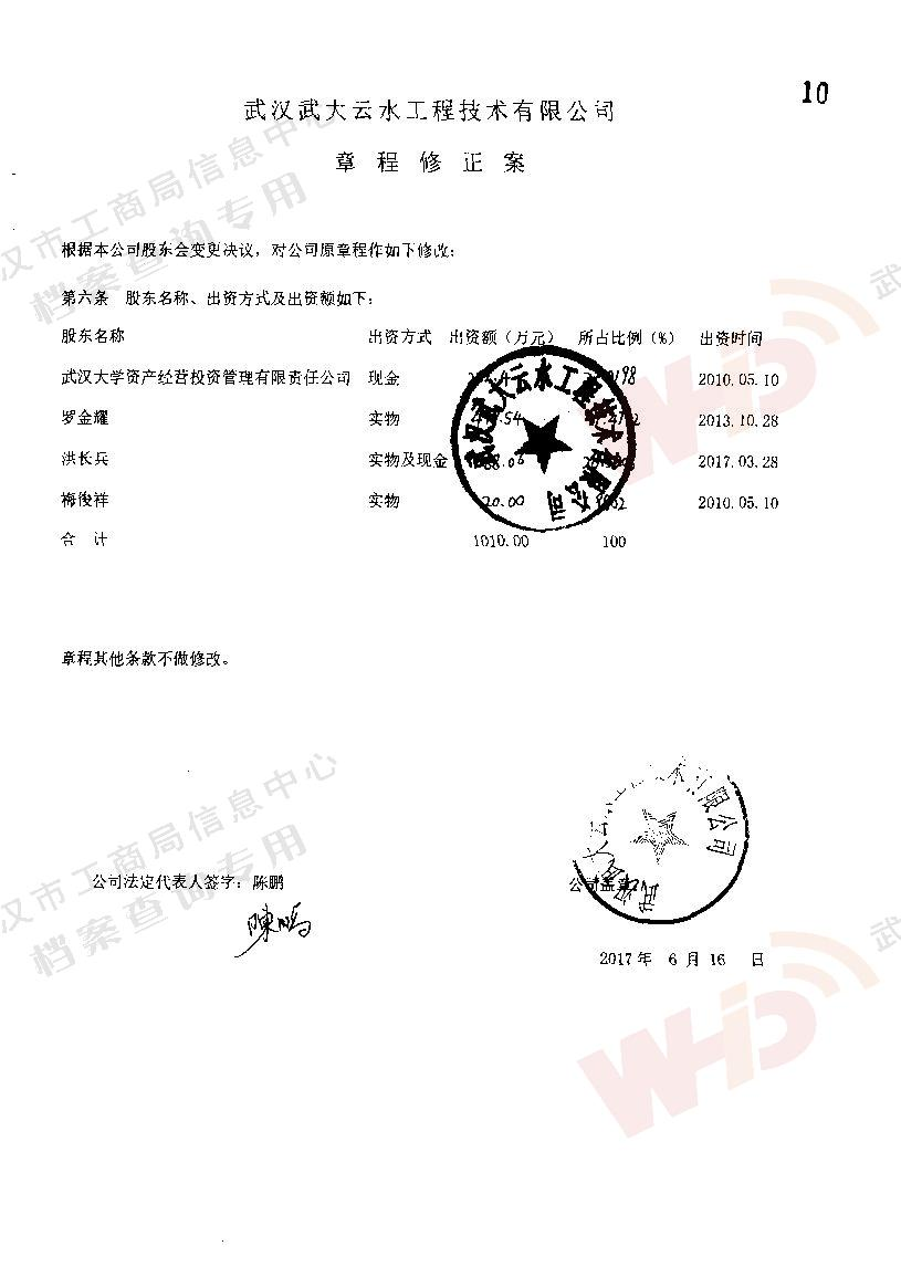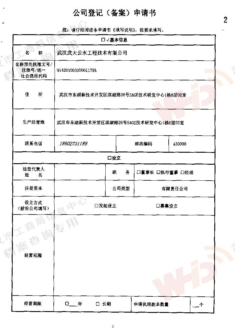 - 2018年5月15日武漢正譽實業集團有限公司入股武漢武大云水工程技術有限公司。
