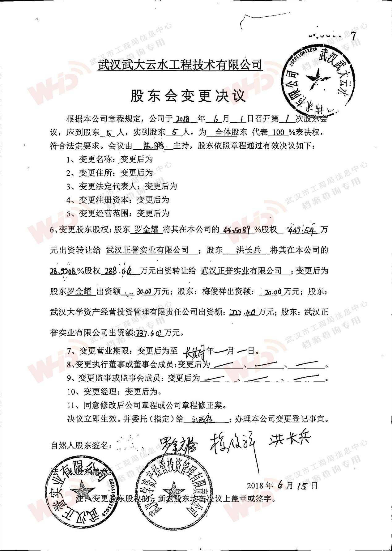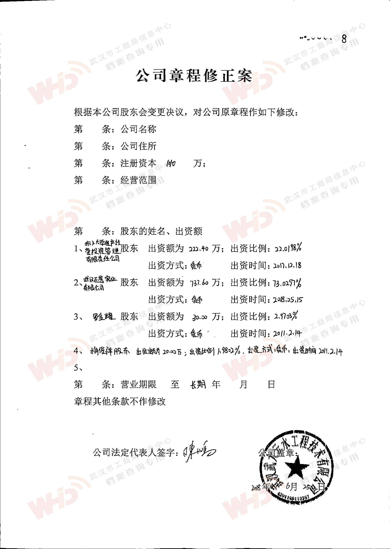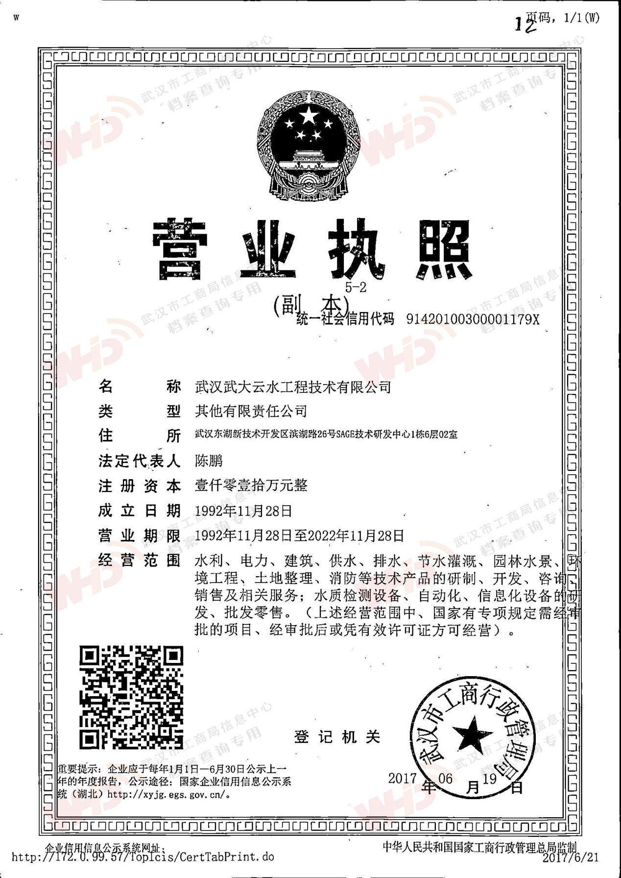 - 2018年5月15日武漢正譽實業集團有限公司入股武漢武大云水工程技術有限公司。